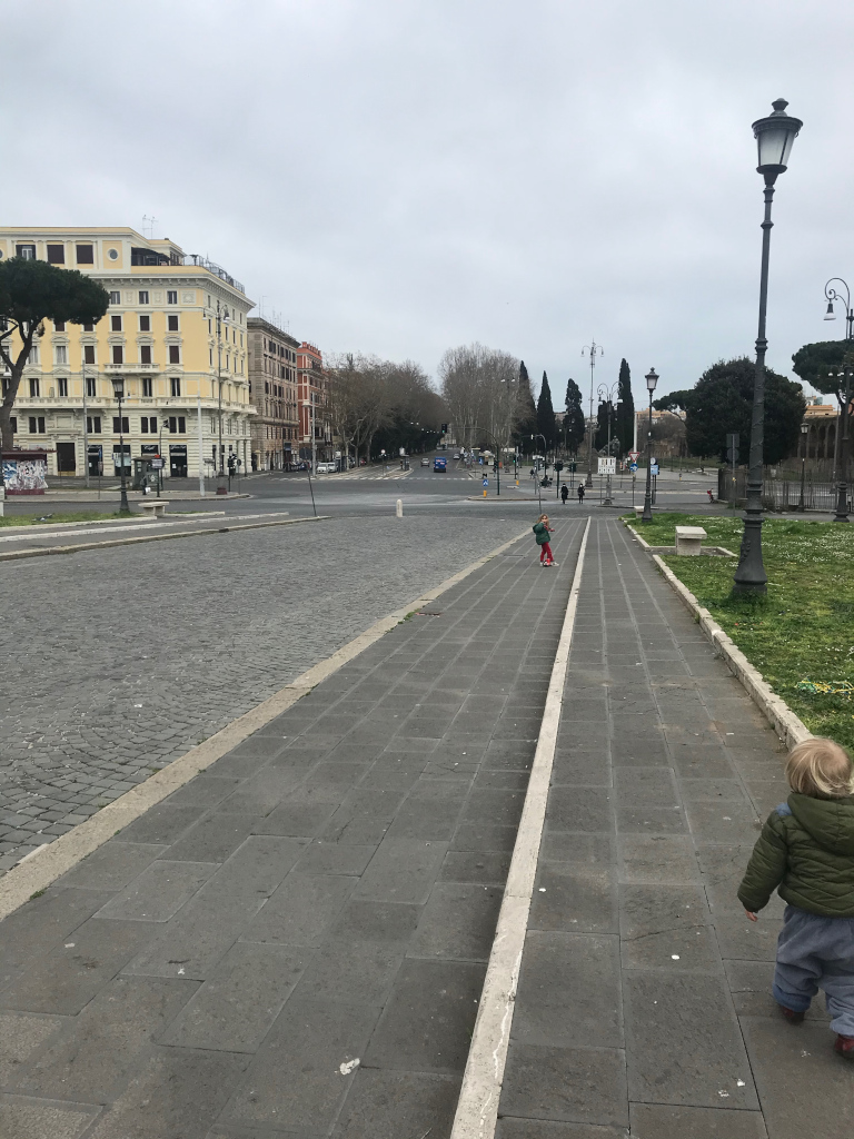 Piazza San Giovanni a Roma (foto 1 e 2), Santa Croce in Gerusalemme (foto 3): colpiscono più che altro per la mancanza di traffico, oltre che di turisti.